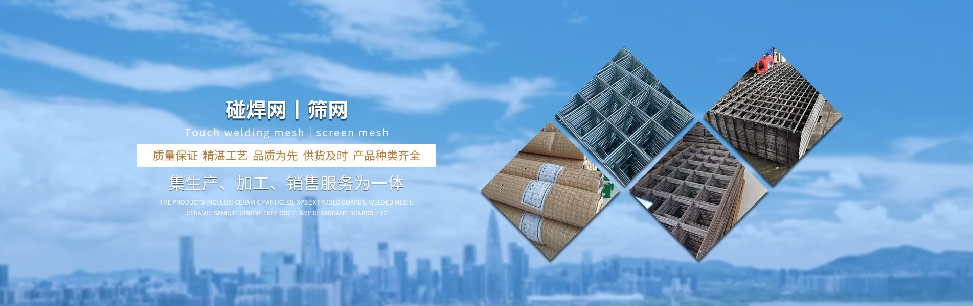 產(chǎn)品有:陶粒、XPS擠塑板、陶砂、無氟co2阻燃板、擠塑復合板。配送材料有:碰焊網(wǎng)、專用膠水、泡沫板、巖棉板、玻璃棉氈、珍珠巖、聚酯無紡布、纖維網(wǎng)格布等。